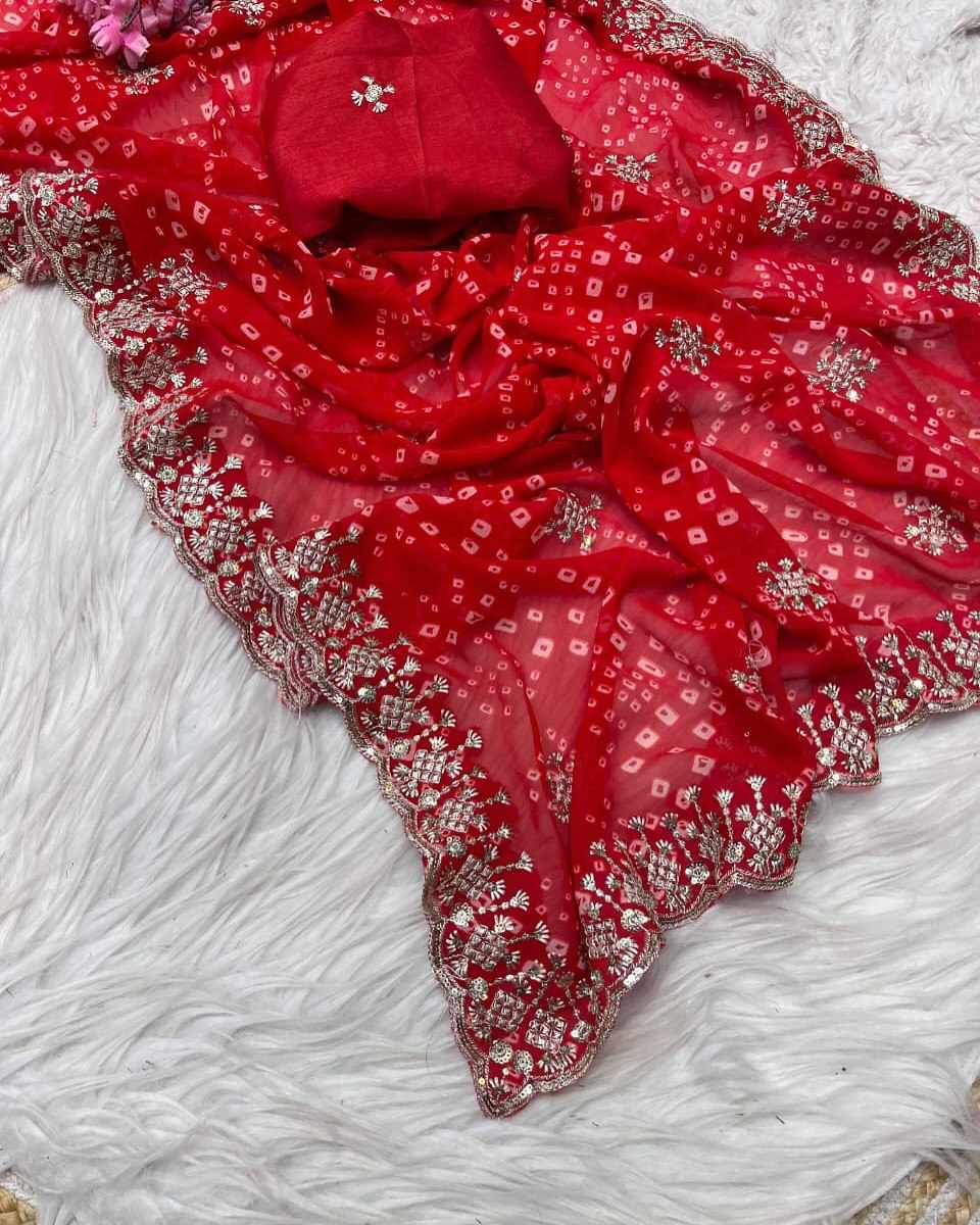| Name : | PIYU P1034 FULDI BANDHANI RED SAREE |