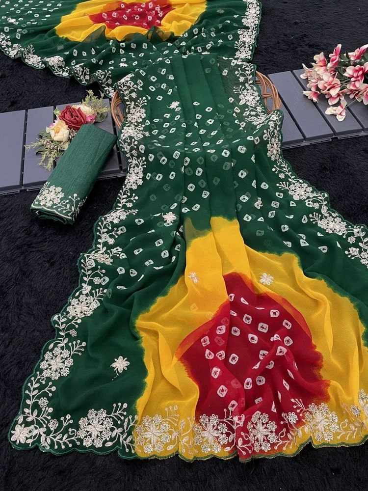 | Name : | PIYU P1038 MULTI COLOR GREEN BANDHANI Saree |